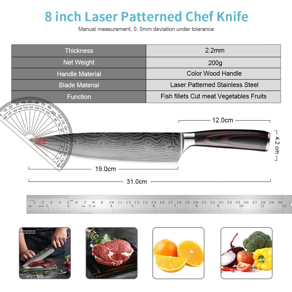 KD Chef Knife 8 inch Kitchen Knives German High Carbon Stainless Steel Knife. Gift Packaging
