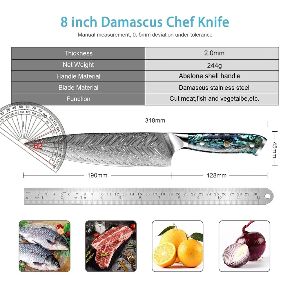 KD 8 inch Damascus Chef Knife Resin Honeycomb Handle Home Kitchen Knives