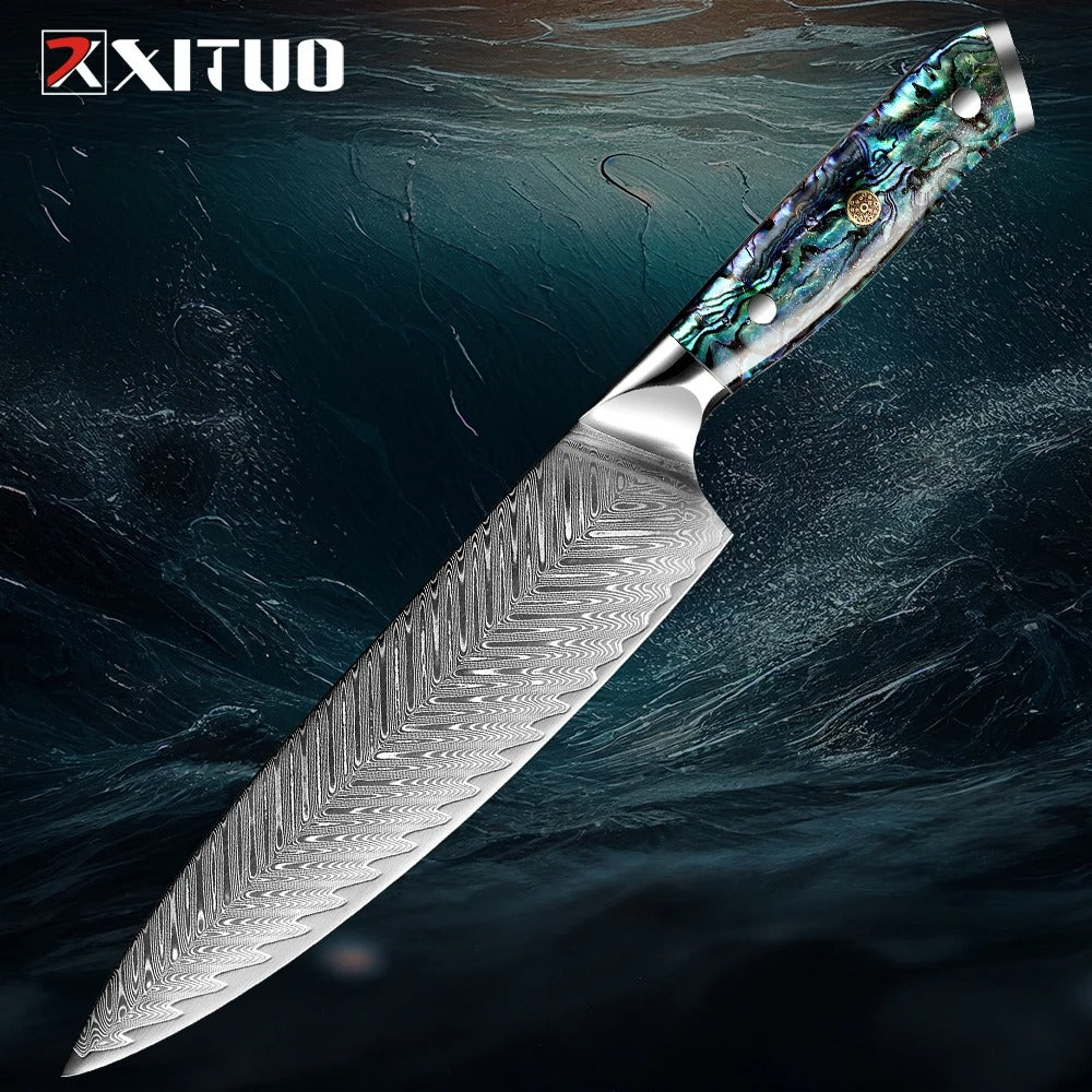 The KD Professional Chef Knife is expertly crafted with VG10 Japanese steel. guaranteeing superior precision and durability. Ideal for any kitchen. this knife offers professional quality results with every cut. Experience the effortless slicing and dicing potential with this versatile and reliable cleaver knife.