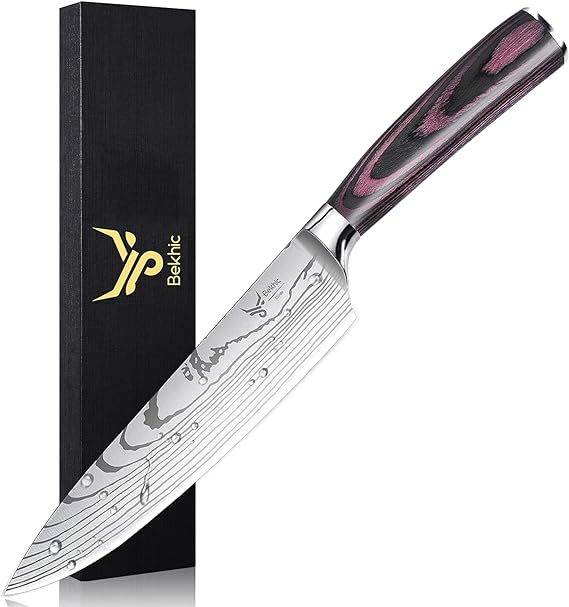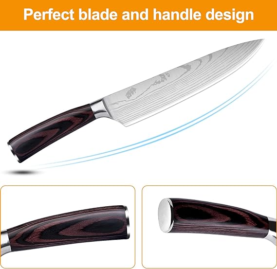 The KD Kitchen Knife is expertly crafted with a 8-inch German high carbon stainless steel blade and a comfortable ergonomic handle. Enjoy precision cutting and effortless slicing with this durable and versatile chef's knife. Upgrade your kitchen with this professional-grade tool.